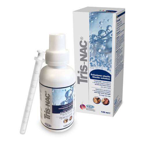 Tris-NACDescrizione Soluzione sterile. Tampone Tris-EDTA + N-Acetil Cisteina (NAC) ad elevata forza igienica per cani e gatti. Il Tris-EDTA (Etilen Diammin Tetracetic Acid) ha attività battericida sui batteri non in crescita situati all'interno del biofilm ( Ciofu et al, 2017); in associazione alla Trometamina (Tris) danneggia le pareti delle cellule batteriche e aumenta la penetrazione all'interno delle membrane batteriche; è ben tollerato e non ototossico; agisce in sinergia con la clorexidina ( Guardabassi et al, 2010). Recentemente, un lavoro in vitro ha dimostrato che Tris- EDTA è un supporto più che efficace nel trattamento ...